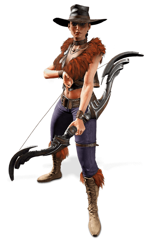 Niia is a resourceful huntress. Surviving in the harsh desert wastes, she's become a master marksman and tracker out of necessity. Spending almost her entire life alone she drifts between settlements taking odd and often unsavoury jobs that suit her particular set of skills. She has never lost a quarry and has never missed a shot. Charging her bow increases effectiveness. She also uses a Ritual Spear, an ancient family heirloom.